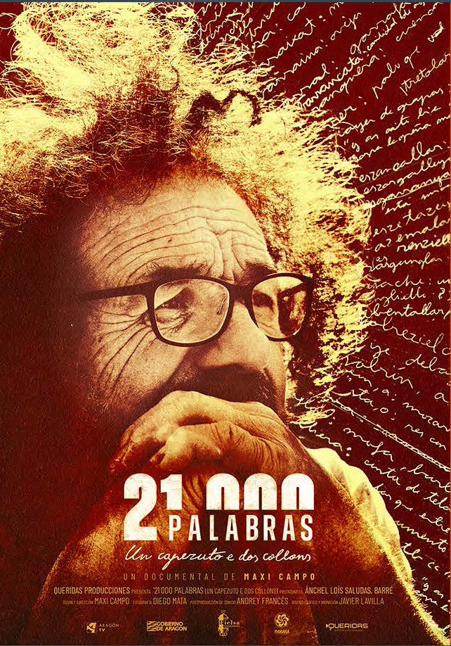 "21.000 PALABRAS (Un capezuto e dos collons)" es un largometraje documental que se ocupa del peculiar trabajo de recuperación del belsetán (variedad del aragonés que se habla en el valle de Bielsa) en forma de diccionario que Ángel Luis Saludas, pastor vecino de Espierba (valle de Bielsa, Pirineo aragonés) lleva realizando desde hace más de 47 años.