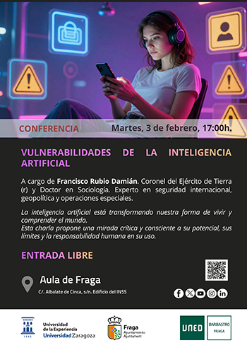 Conferencia: "Vulnerabilidades de la Inteligencia Artificial" impartida por Francisco Rubio Damián. Coronel del Ejército de Tierra (r) y Doctor en Sociología. Experto en seguridad internacional, geopolítica y operaciones especiales.