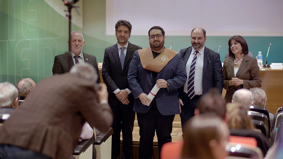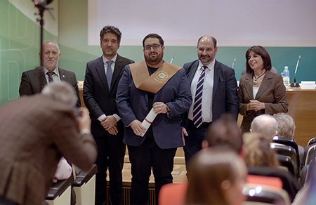 A continuación, se ha hecho entrega de diplomas y becas a una representación de los estudiantes que finalizaron sus estudios oficiales de Grado y Máster en el curso pasado, como reconocimiento a su esfuerzo y constancia. También se ha rendido homenaje a los tutores y tutoras del Centro que se han jubilado a lo largo del curso 2024-2025.